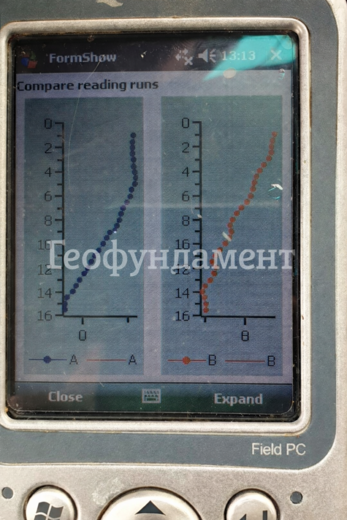 Определение устойчивость склона и автомобильных дорог выполняется цифровым инклинометром ItmSoil. В специальную инклинометрическую скважину опускается инклинометр через каждые 0,5 метра и выполняется определение текущего положения датчика в пространстве. Последующие измерения ( «цикл») показывают уже отклонения от первого положения скважины. Труба в скважина должна иметь специальные направляющие ( «желоба» ) с четырех сторон, по которым передвигается инклинометр. Опыт выполнения инклинометрических измерений с 2009 года. Инклинометрические измерения выполняются за определением устойчивости склонов, автодорог, плотин, дамб , «стены в грунте» и т.д.